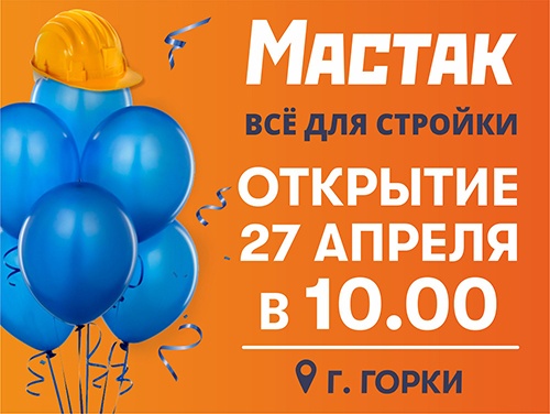 Приглашаем вас на торжественное открытие нового строительного магазина Мастак в городе Горки!