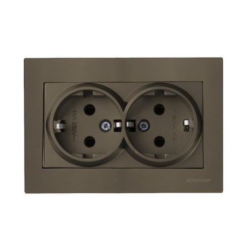 Rita – Розетка двойная 2x2P+E, (в комплекте с рамкой), антрацит