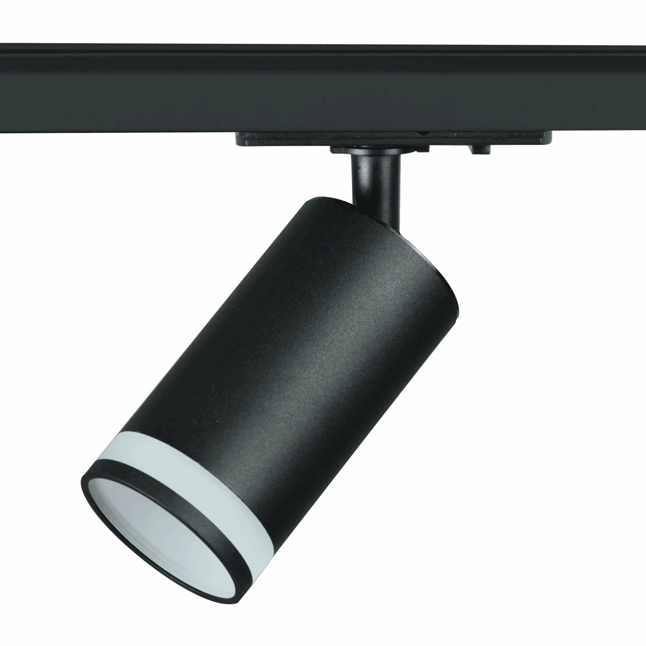 Светильник трековый однофазный с матовым кольцом под лампу GU10 , д.53*100 мм, металл, IP20,круг, черный