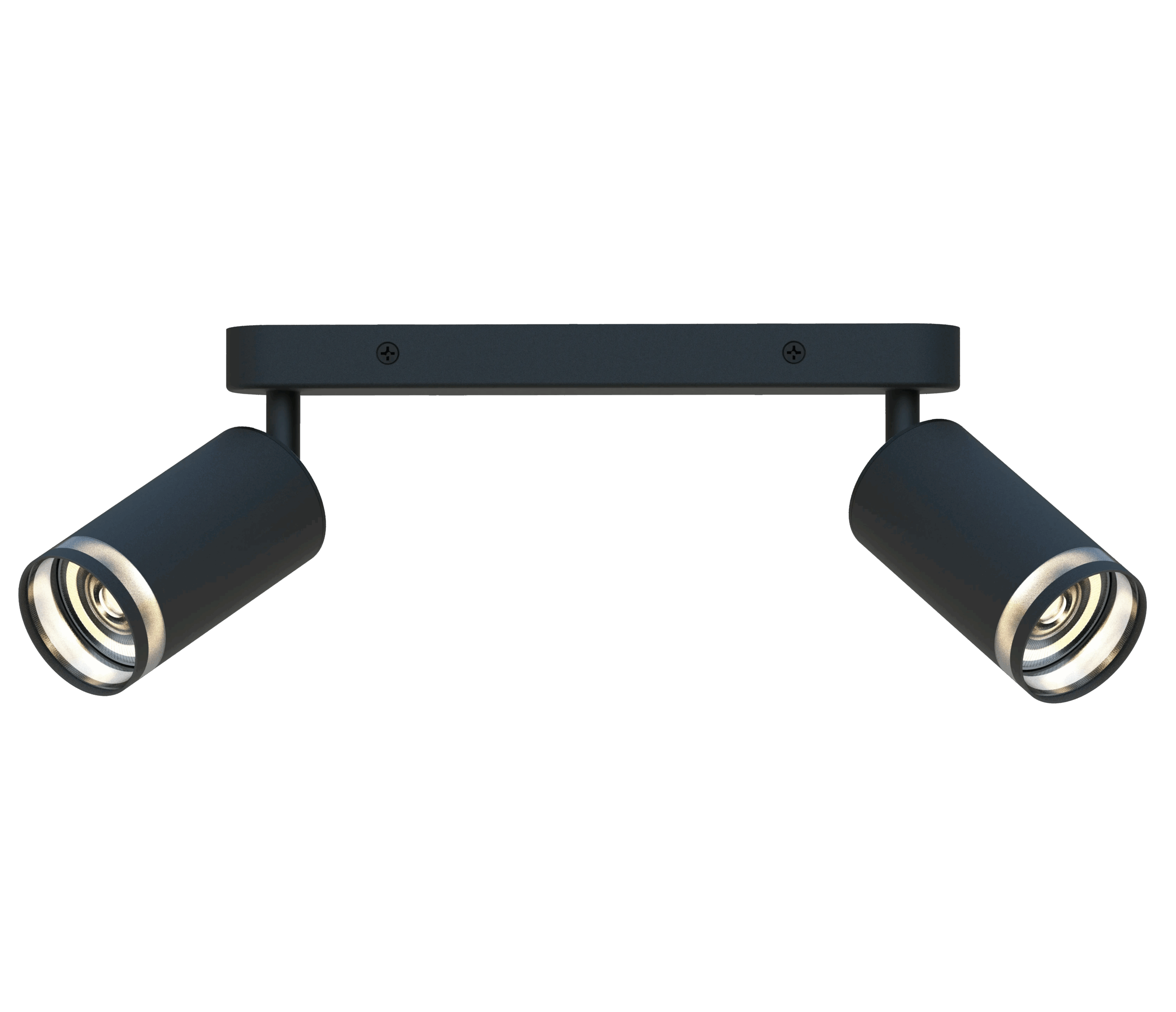 Светильник накладной с матовыми кольцами двойной поворотный под лампы 2* GU10, круг, металл, черный, серии MODERN