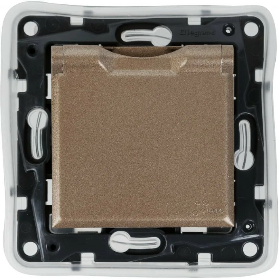 Structura – Розетка 2P+E нем. стд. с крышкой, со шторками IP44 (шампань)