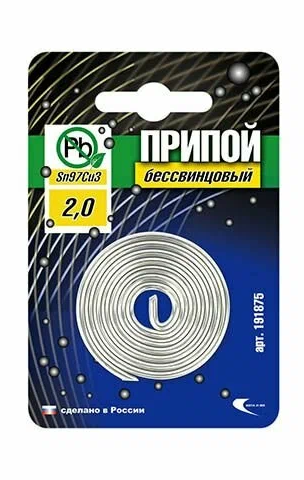Припой Sn97Cu3 (бессвинцовый) проволока, спираль ф2мм в блистере