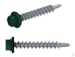 Саморез кровельный 4.8х29 мм цинк, шайба с прокл., PT3, RAL 6005 (80 шт в пласт. конт.) STARFIX