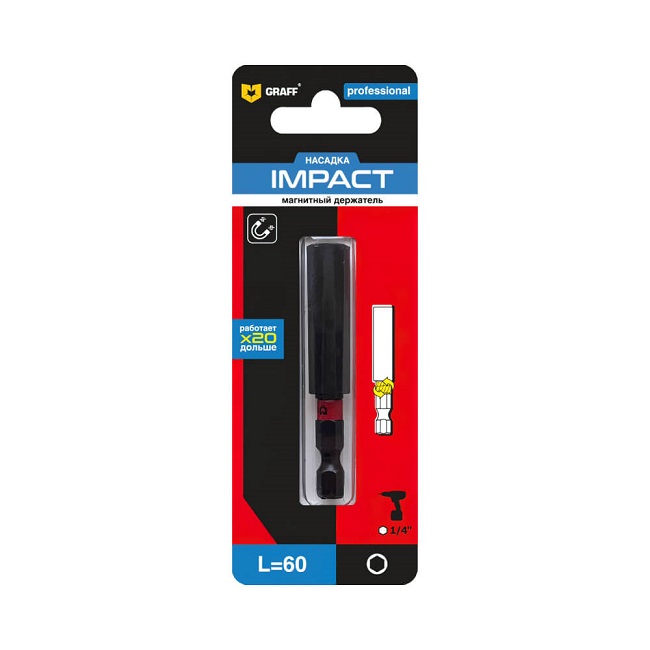 Магнитный держатель Impact 60 мм для бит (1 шт.блистер) Expert GRAFF ,страна происх.КИТАЙ