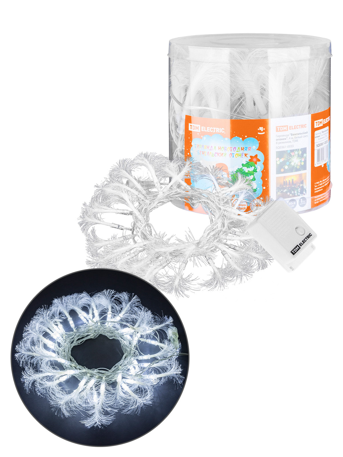 Гирлянда “Бенгальский огонек”, 4 м, белый свет, 8 режимов, TDM 1/36