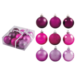 Набор шаров “Фуксия” 9шт х 6см, материал: пластмасса, полиэстер, цвет: фуксия