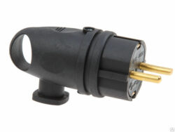Вилка угловая с ушком (с/з, 16А, 250В) каучук, черная Юпитер