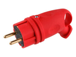 Вилка угловая с ушком (с/з, 16А, 250В) каучук, красная Юпитер