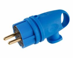 Вилка угловая с ушком (с/з, 16А, 250В) каучук, синяя Юпитер