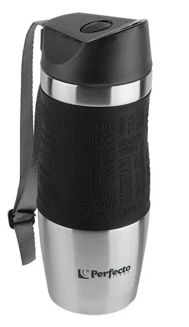 Термокружка с ремешком, 380 мл, нержавеющая сталь, black, PERFECTO LINEA