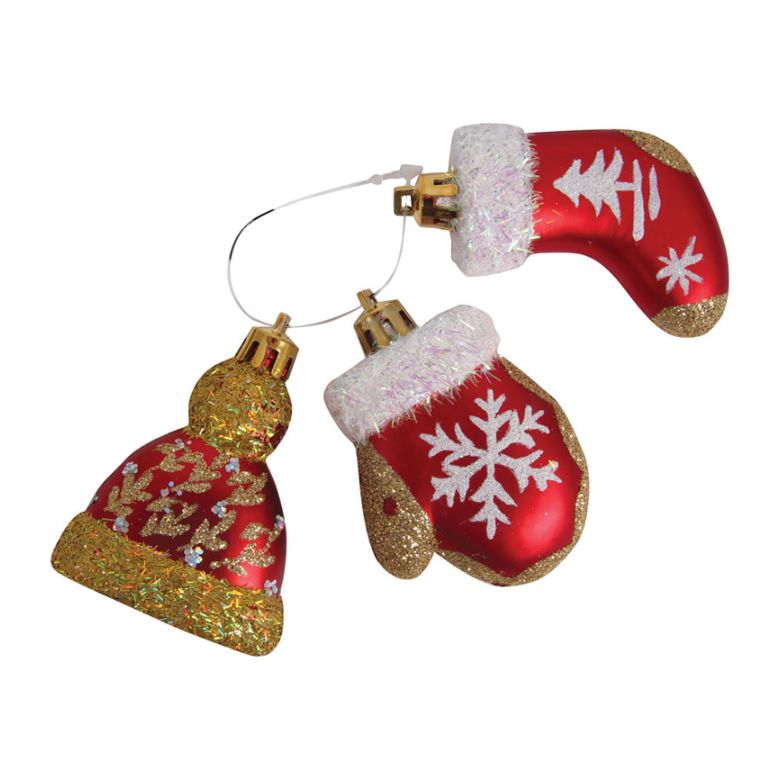 Набор елочных украшений “Новогодний” 3шт х 7см, материал: пластмасса, полиэстер, цвет: красный