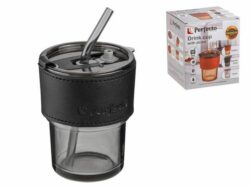 Стакан стеклянный (комплект) с трубочкой и кожаным кейсом, 400 мл, Smoke Grey, PERFECTO LINEA