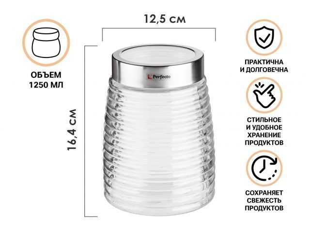 Банка для сыпучих продуктов стеклянная Ажур (Azhur) 1250 мл, PERFECTO LINEA