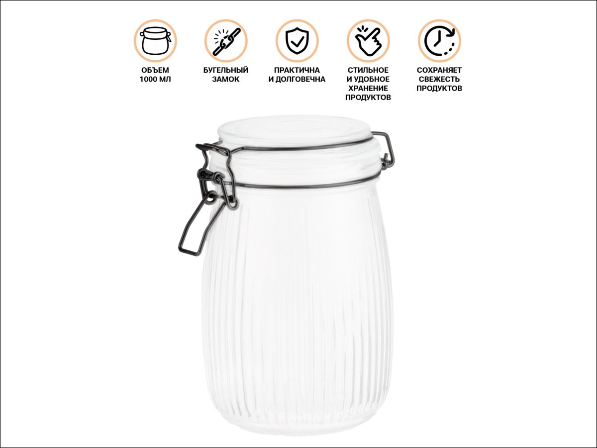Банка для сыпучих продуктов стеклянная GRACE (Грейс) 1000 мл, PERFECTO LINEA