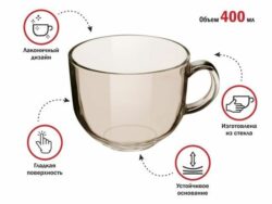 Кружка-бульонница стеклянная, 400 мл, Clear, PERFECTO LINEA