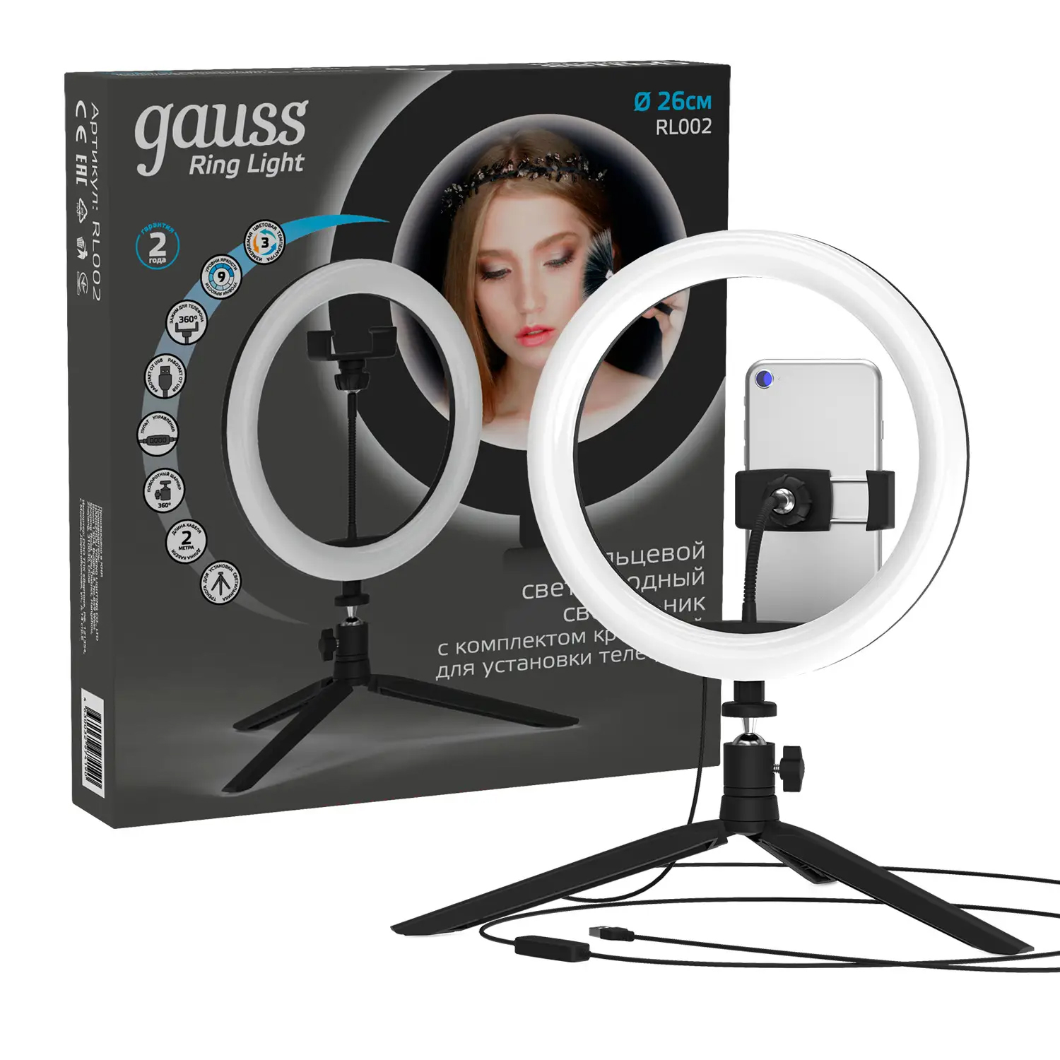 Кольцевая светодиодная лампа (светильник) Gauss 14W 3000-6500K 5V USB, 26см, пульт LED в комплекте