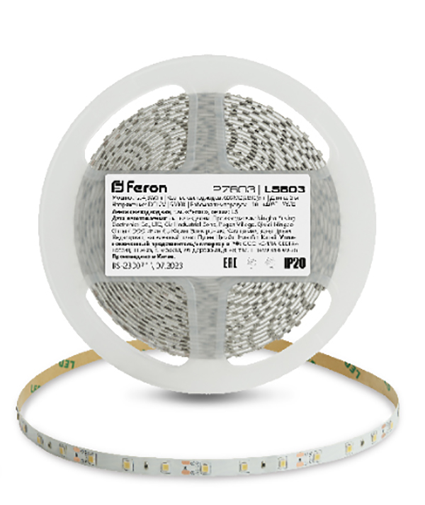 Лента светодиодная 12V-2835-120D, 9,6W/m, 4000K, IP20, 5м (16005)