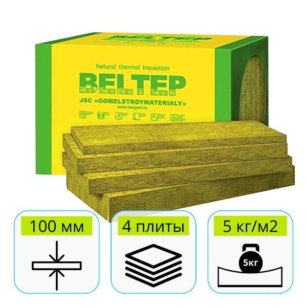 Утеплитель плиты из минваты БелТеп ЛАЙТ (1000х600х100мм) (0,24м3/1уп_24уп/5,76м3/1пал) 50кг/м3
