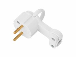 Вилка угловая с откидывающимся ушком (с/з, 16А, 250В) белая, Bylectrica