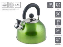Чайник со свистком, нержавеющая сталь, 2.5 л, серия Holiday, зеленый металлик, PERFECTO LINEA