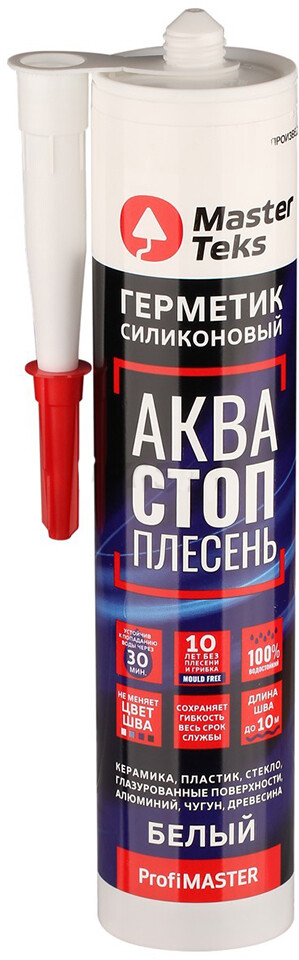 Герметик MasterTeks ProfiMaster силиконовый акваСТОПплесень, белый, 280мл