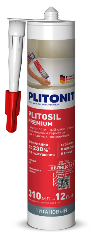 Герметик силиконовый санитарный PLITONIT PLITOSIL Premium (титановый) -310мл