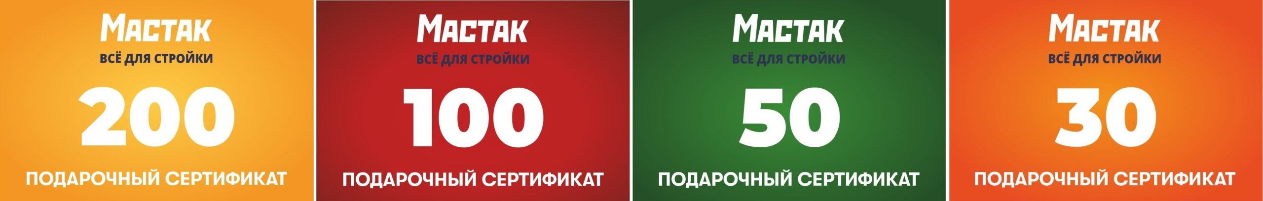 Доступны сертификаты номиналом 30, 50, 100 и 200 рублей. Приобрести можно на кассе или инфоцентре магазина Мастак Вашего города.