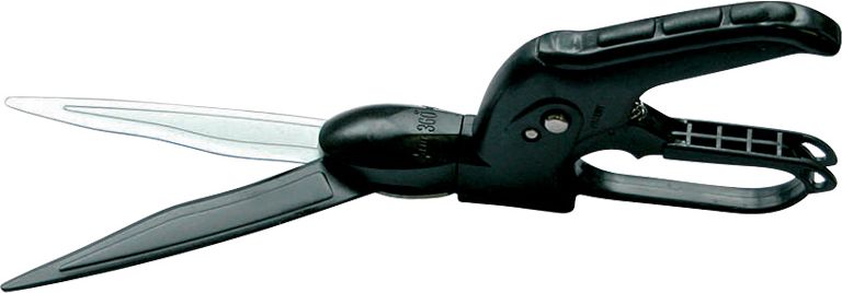 Ножницы для травы ЦЕНТРОИНСТРУМЕНТ (0240) используется для подрезки травы и тонких до 4 мм веток кустарника «живая изгородь». Лезвия – углеродистая сталь с ANTISTICK покрытием. Волнообразная форма лезвия для ровного чистого реза (не сминает ветки). Ручки – ABS-пластик. Вращение режущего узла вокруг собственной оси на 180° (фиксация в 5 положениях: 0°; 45°; 90°; 135°; 180°). Эргономичный дизайн конструкции. Закрытая рукоятка (надёжная защита руки при работе). Надёжный фиксатор (безопасность в закрытом положении). Длина режущей кромки 13,3 см.