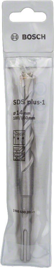 Бур (сверло) SDS-plus 14х100х160 мм BOSCH SDS-plus 1 (2608680281) служит для изготовления отверстий в неармированном бетоне, кирпичной и блочной кладке диаметром 14 мм и на глубину до 100 мм. Твердосплавная пластина с центрирующим элементом для большей точности отверстий.
