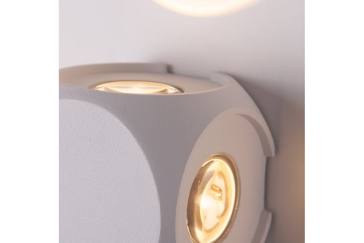 Преобразить внешний вид пространства поможет настенный черный светодиодный светильник CUBE. Четыре потока света формируют эффектный рисунок на поверхности, что позволяет создать уникальный световой дизайн из нескольких светильников. Возможно использование в качестве уличного освещения или интерьерной подсветки. Степень пылевлагозащиты IP54.