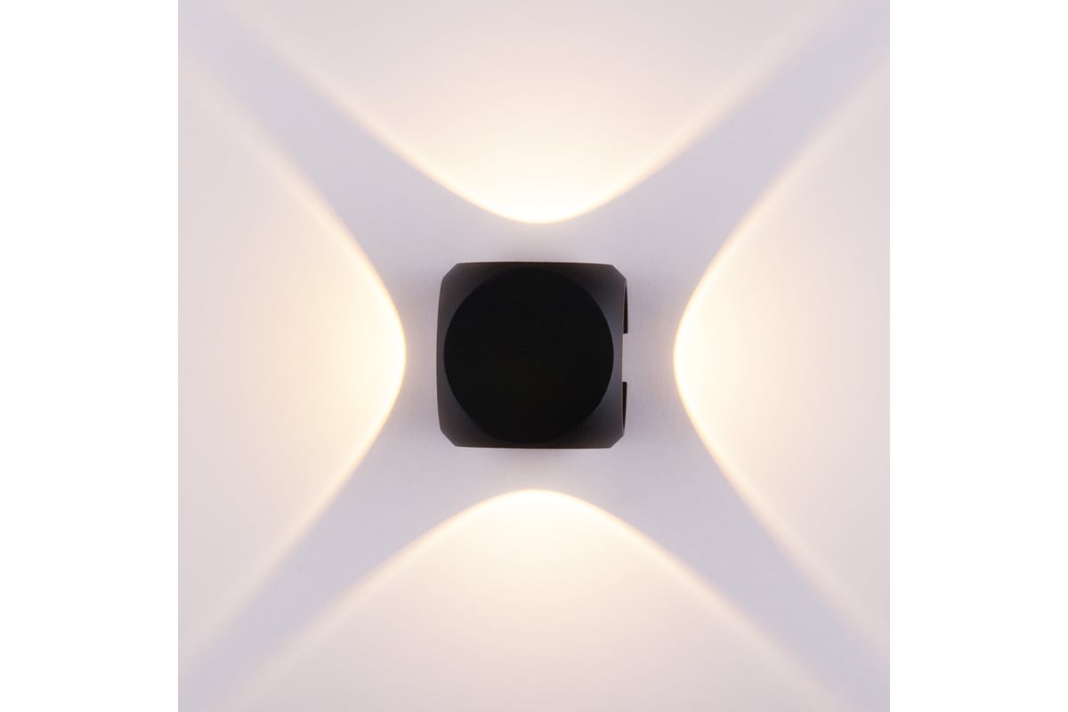 Преобразить внешний вид пространства поможет настенный черный светодиодный светильник CUBE. Четыре потока света формируют эффектный рисунок на поверхности, что позволяет создать уникальный световой дизайн из нескольких светильников. Возможно использование в качестве уличного освещения или интерьерной подсветки. Степень пылевлагозащиты IP54.