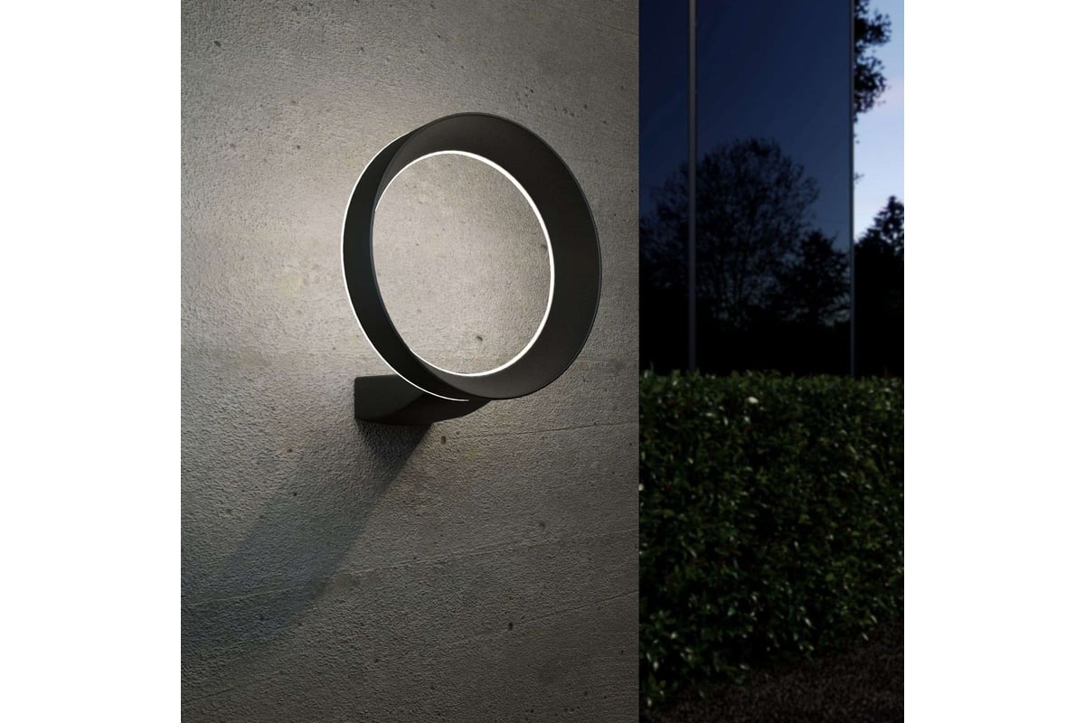 Уличный настенный светодиодный светильник Ring IP54 1710 TECHNO LED черный предназначен для создания дополнительного освещения, а также декоративной подсветки снаружи и внутри помещений. Встроенные SMD светодиоды характеризуются высокой яркостью свечения при минимальном потреблении электроэнергии. Стильная минималистичная модель 1710 TECHNO LED черный подчеркивает экстерьер и поддерживает общую атмосферу ландшафтного дизайна.