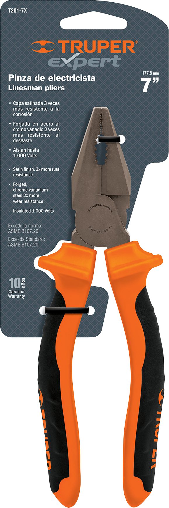 Плоскогубцы 180 мм TRUPER T201-7X (17329) позволяют работать с проводами, по которым проходит ток под напряжением до 1000 вольт. Для безопасности на рукоятках имеется диэлектрическое покрытие. Рабочая часть из Cr-V стали отличается прочностью и износостойкостью.
