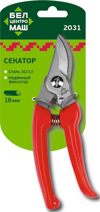 Секатор контактный ЦЕНТРОИНСТРУМЕНТ Белцентромаш (2031) с лезвиями из стали 3Cr13. Рукоятки из пластика. Имеет надёжный фиксатор.