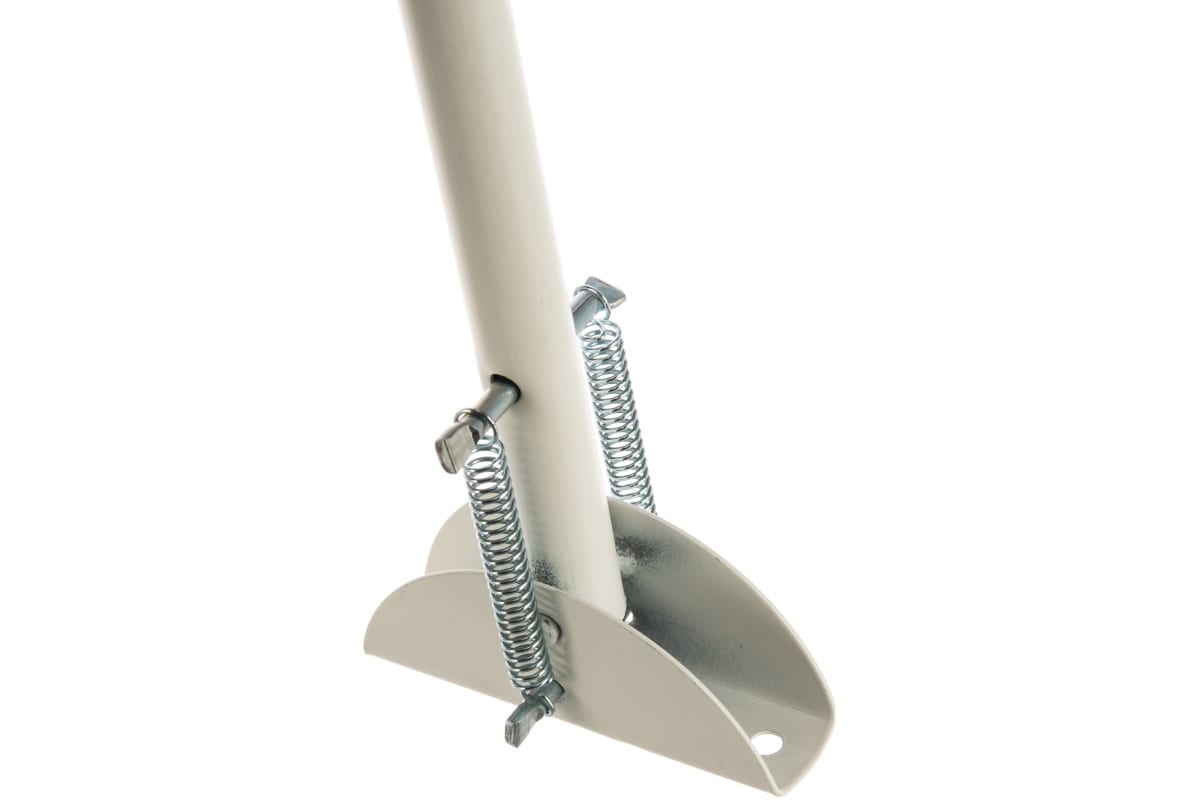 Упор для ворот 250×14,0 мм DOMAX ST 250 белый (88213) может иметь два положения – рабочее нижнее, при котором ножка упирается в землю и не дает воротам закрыться, и нерабочее верхнее, при котором упор сложен и не мешает движению створки. Поднимать и опускать упор можно рукой или ногой – как вам будет удобнее. Среди особенностей упора можно выделить действие по принципу храповика – ворота могут открыться шире, но закрыться – никак. Связано это с тем, что чем сильнее воздействие внешней силы (ветер, удар, или ребенок пытается захлопнуть дверь по незнанию), тем сильнее упор будет врезаться в землю и фиксировать створку даже в снег и дождь. Для установки упора требуются только саморезы (не входят в комплект) и несколько минут вашего времени.