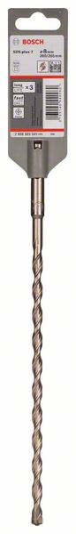 Бур (сверло) SDS-plus 8х200х265 мм BOSCH SDS-plus-7 (2608585041) служит для изготовления отверстий в армированном и неармированном бетоне, кирпичной, каменной и блочной кладке диаметром 8 мм и на глубину до 200 мм имеет повышенную износостойкость. Твердосплавная головка, оснащенная четырьмя режущими кромками, является цельной и массивной что продлевает срок службы оснастки и не допускает обламывания при попадании на арматуру, имеет специальное центрирующее острие для эффективного засверливания в бетоне и получения более точных отверстий.