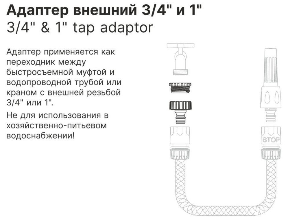 Адаптер внешний 1″ и 3/4″ STARTUL GARDEN (ST6011-9-3/4-1) — это универсальный соединитель, который применяется как переходник между быстросъемной муфтой и краном для подключения шланга к водопроводу. Резьба: 1″ и 3/4″.