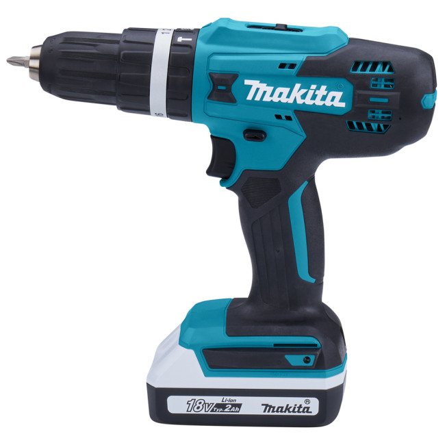 Дрель-шуруповерт аккумуляторная ударная MAKITA HP 488 DWAE (HP488DWAE) – двухскоростная ударная дрель-шуруповерт компактного размера. Крутящий момент 42 Нм. Электронная регулировка оборотов, электрический тормоз, реверс. Ударный механизм для работы с твердыми материалами. Дрель-шуруповерт подходит для сверления отверстий в стали, дереве, в твердых материалах и для работы с крепежом.