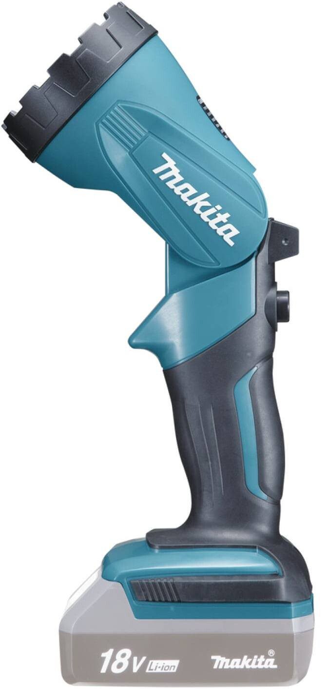 Фонарь аккумуляторный MAKITA используется для дополнительного освещения, например, при работе аккумуляторной дрелью, либо применяется как самостоятельный осветительный прибор. Питание 14.4/18 В фонаря обеспечивают литий-ионный аккумулятор G — типа и зарядное устройство базового инструмента. Преимуществом данного фонаря является упрочненный резиной корпус, способный защитить его конструкцию при случайном падении. Головная часть фонаря может принимать четыре положения — под углом 0˚, 45˚, 90˚ и 110˚, что значительно расширяет функциональные возможности данного прибора. Поставляется без аккумулятора и зарядного устройства.