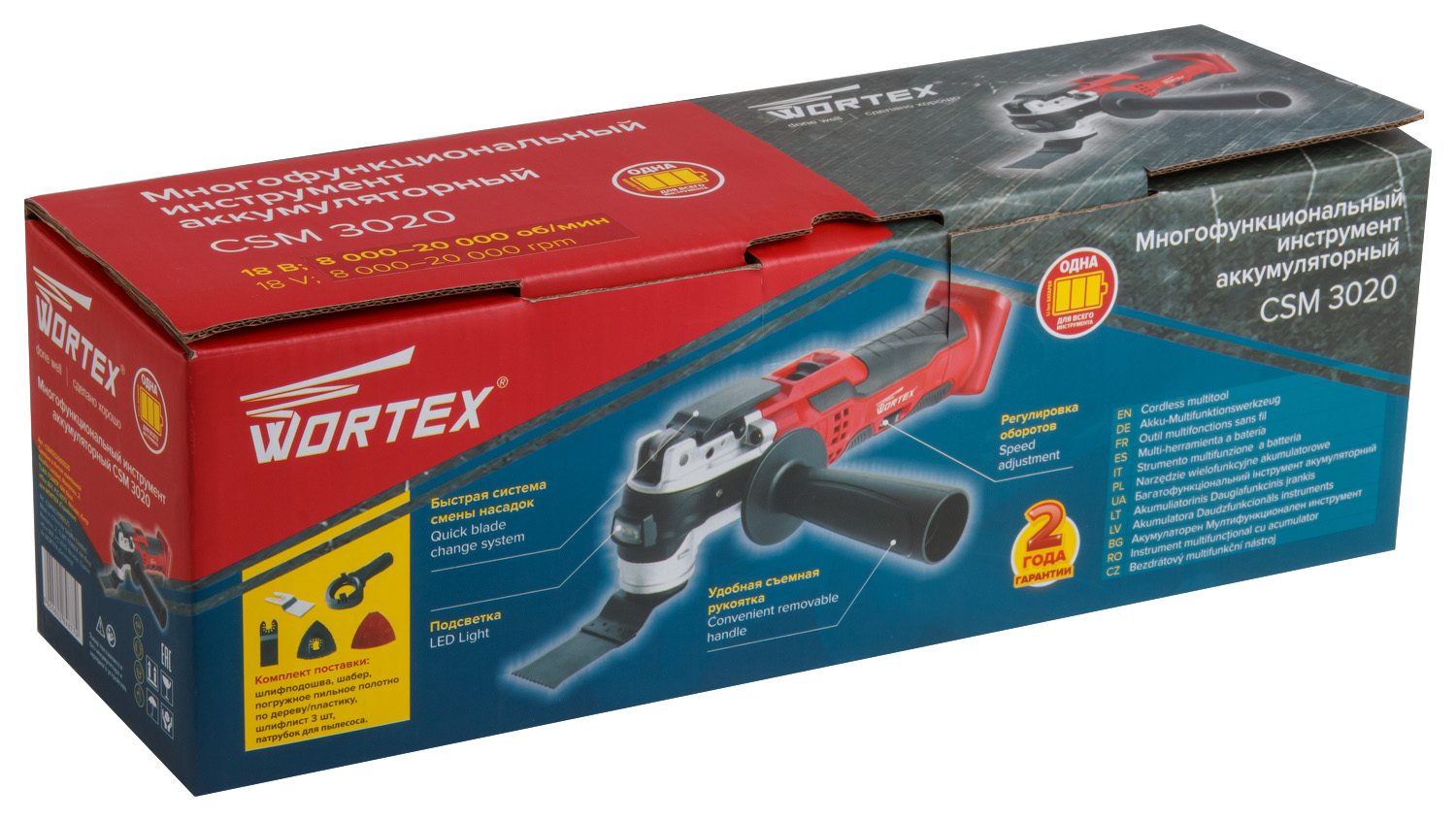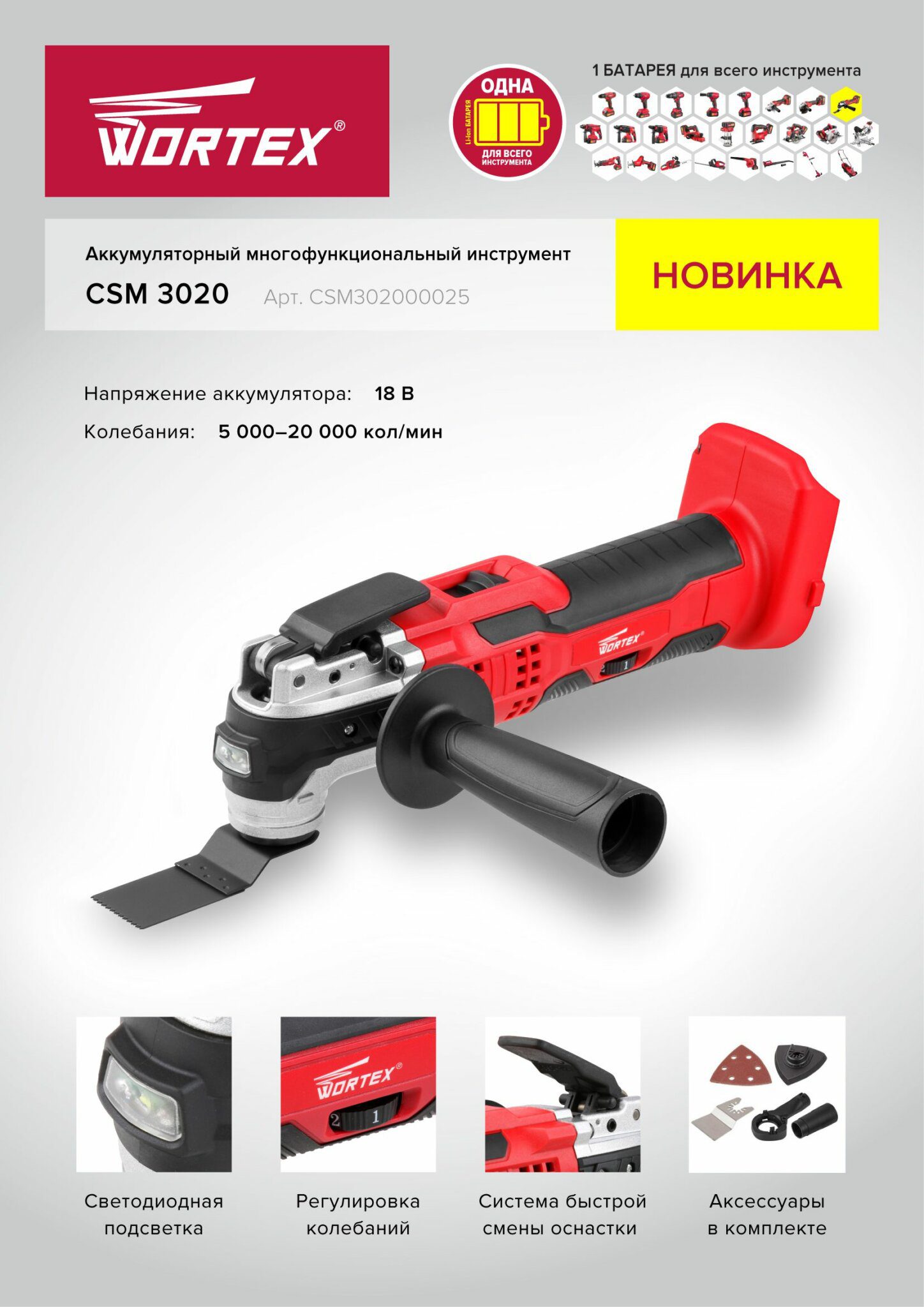 Многофункциональный инструмент (реноватор) аккумуляторный WORTEX СSM 3020 ALL1 (CSM302000025) имеет регулировку оборотов, подсветку рабочей зоны и возможность подключения к пылесосу (насадка в комплекте). Крепление оснастки стандарта OIS, есть возможность бесключевой смены насадок.