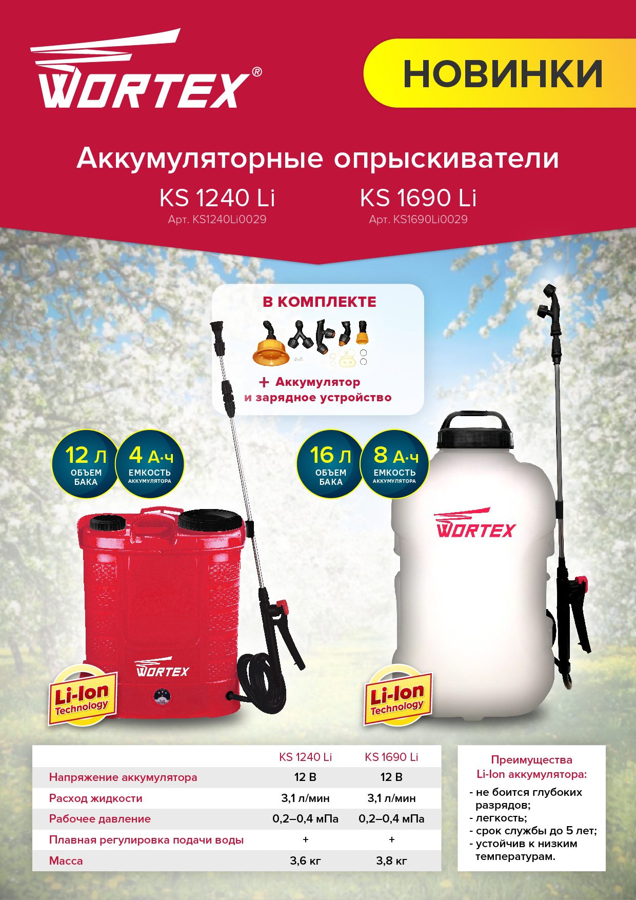 Аккум. опрыскиватель WORTEX KS 1690 Li 12В, 1 акк., 8 Ач, 16 л