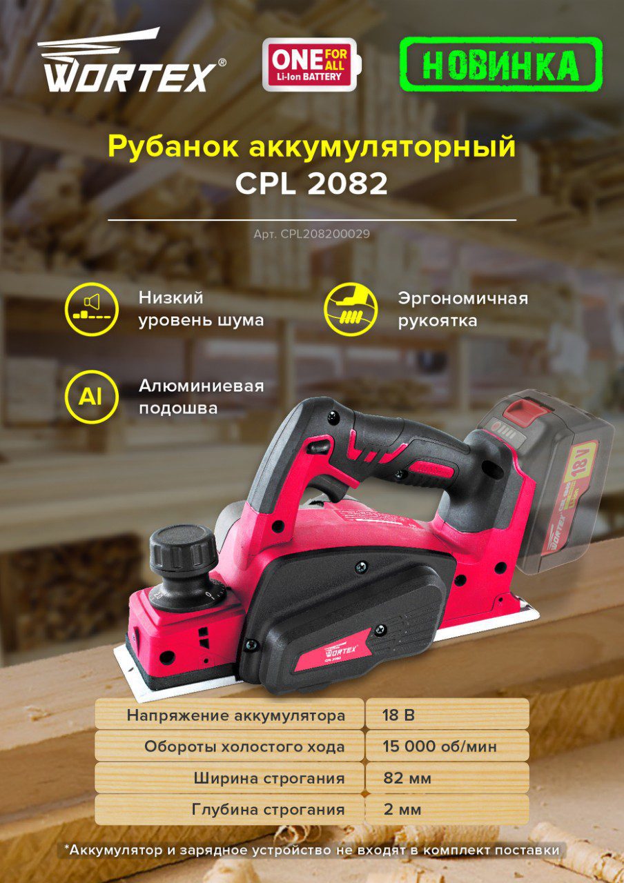 Рубанок аккумуляторный WORTEX CPL 2082 ALL1 (CPL208200029) отличается возможностью использования в местах без электроснабжения, низким уровнем шума, мощным двигателем, позволяющим осуществлять чистое строгание, дополнительно этому способствует плавная и точная регулировка глубины строгания. Модель оснащена алюминиевой подошвой и эргономичной рукояткой. Для безопасности пользователя предусмотрена блокировка кнопки включения. Возможна выборка четверти.