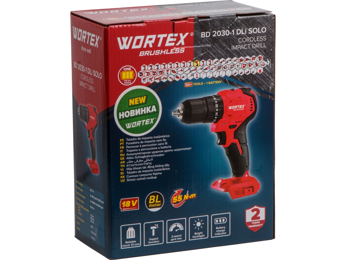 Дрель-шуруповерт аккумуляторная ударная WORTEX BD 2030-1 DLi ALL1 SOLO (1333423) оснащена надежным бесщеточным двигателем, что продлевает срок службы как самого инструмента, так и аккумуляторов в 2 раза, снижает энергопотребление на 50%, делает инструмент компактнее, а работу продуктивнее, исключает необходимость замены угольных щеток.
