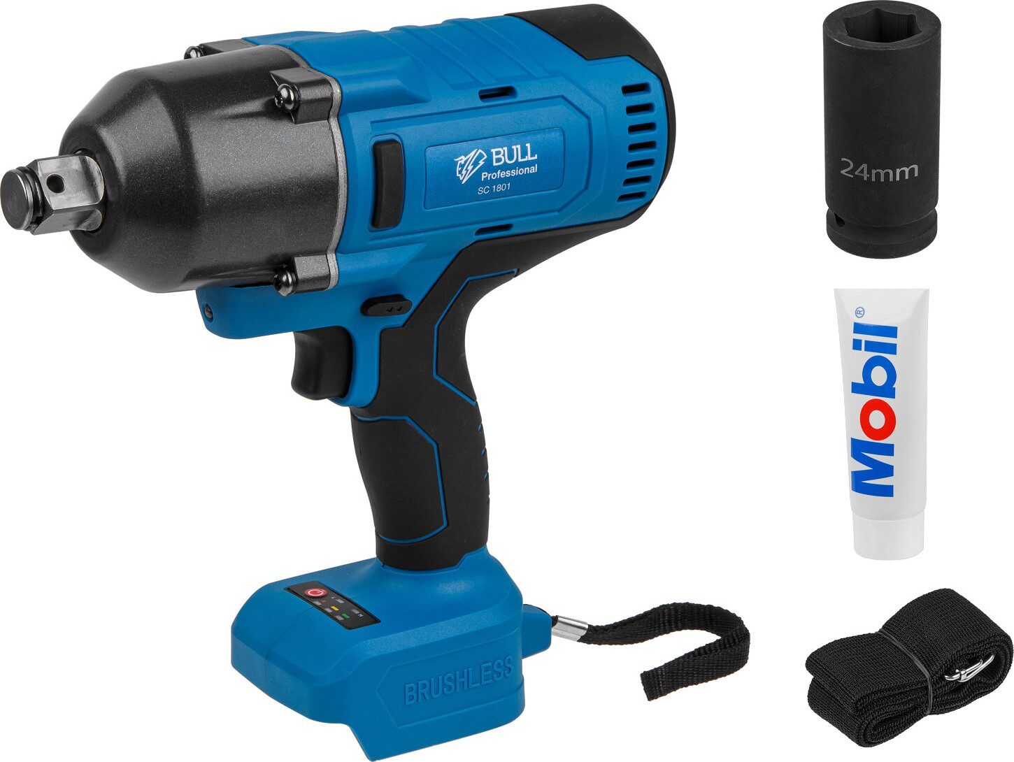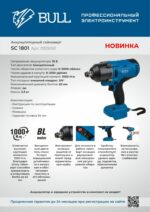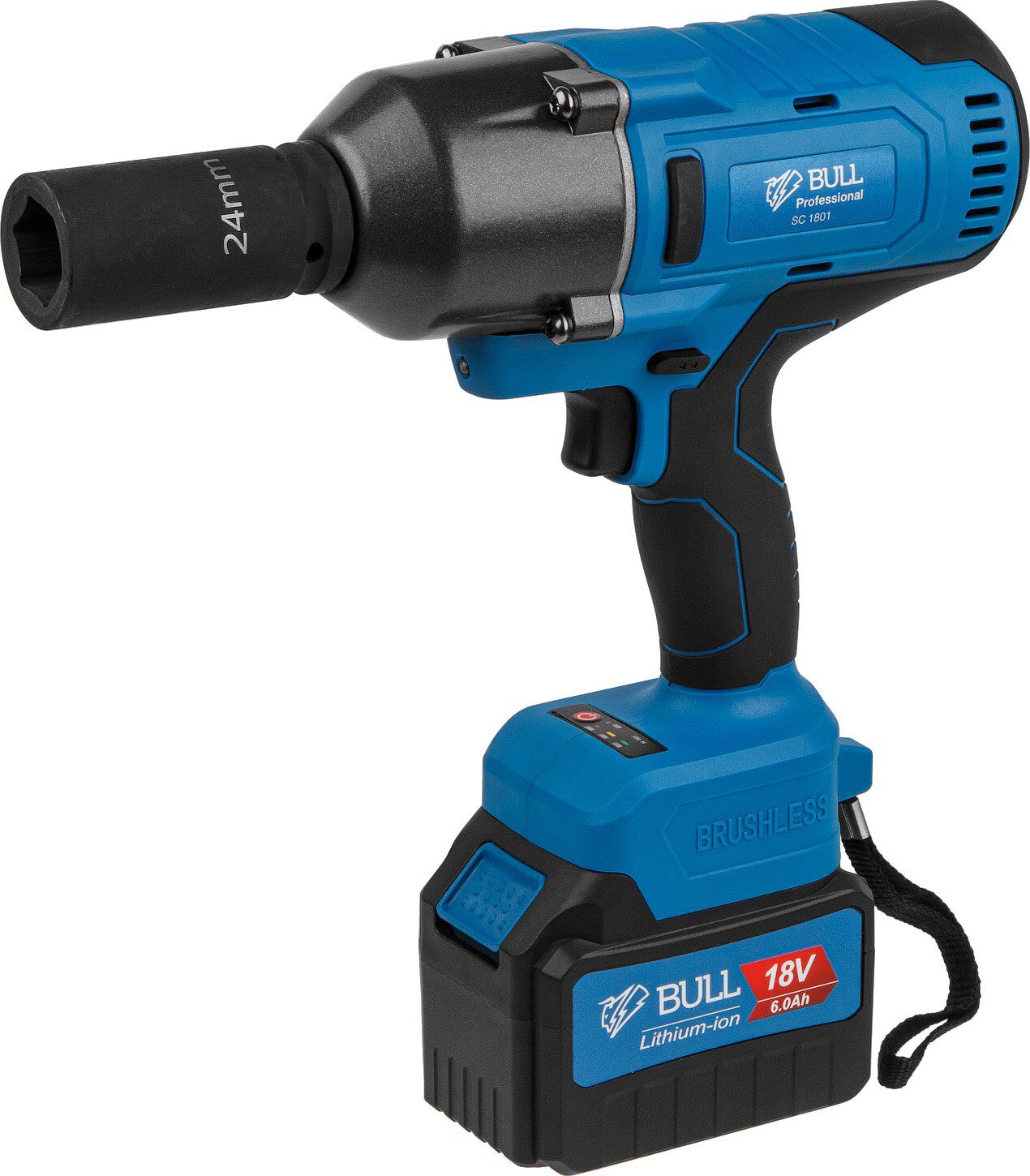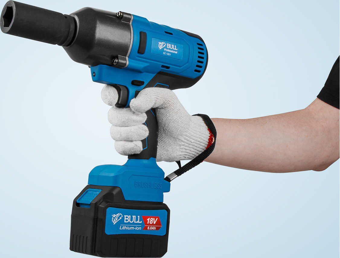 Гайковерт аккумуляторный ударный BULL SC 1801 (0329061) отличается высоким крутящим моментом 1000 Нм, возможностью использования в местах без электроснабжения. Благодаря этому гайковерт способен заворачивать и откручивать болты до 62 мм. Модель имеет бесщеточный двигатель, что способствует повышенной устойчивости к нагрузкам и обеспечивает простоту в его обслуживании. Кроме того инструмент оснащен защитой от перегрузки и имеет предохранительную муфту. Для точности в работе гайковерт оснащен двухуровневой электронной регулировкой оборотов. Удобству пользователя способствует индикатор уровня заряда, подсветка, обрезиненная рукоятка.