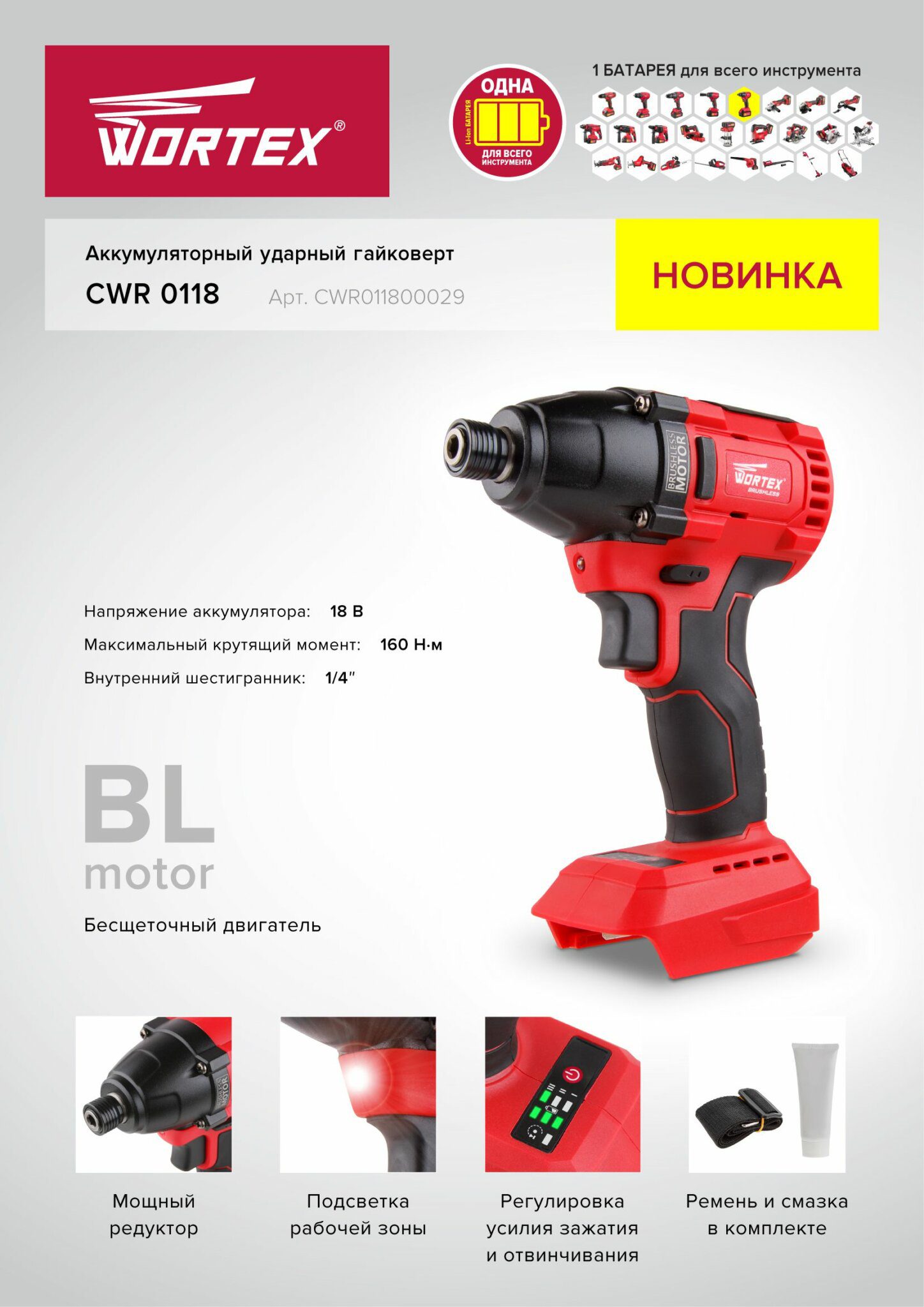 Шуруповерт (винтоверт) ударный аккумуляторный WORTEX CWR 0118 ALL1 (0329286) имеет бесщеточный двигатель, что способствует повышенной устойчивости к нагрузкам, обеспечивает легкость инструмента, простоту в его обслуживании. Для точности в работе гайковерт оснащен панелью регулировки крутящего момента. Удобству пользователя способствует подсветка, обрезиненная рукоятка.