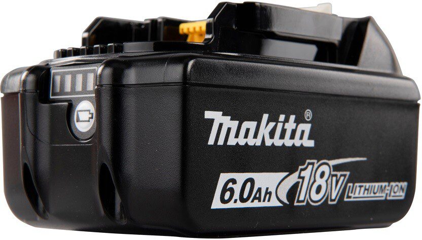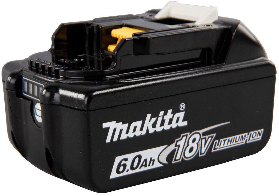 Аккумулятор 18 В 6 Ач Li-Ion MAKITA BL 1860 B (632F69-8) с индикотором уровня заряда. Мощный аккумулятор общего назначения для инструментов Makita LXT 18 В. Идеален для инструментов с высоким энергопотреблением. Время зарядки около 55 мин с быстрым зарядным устройством.