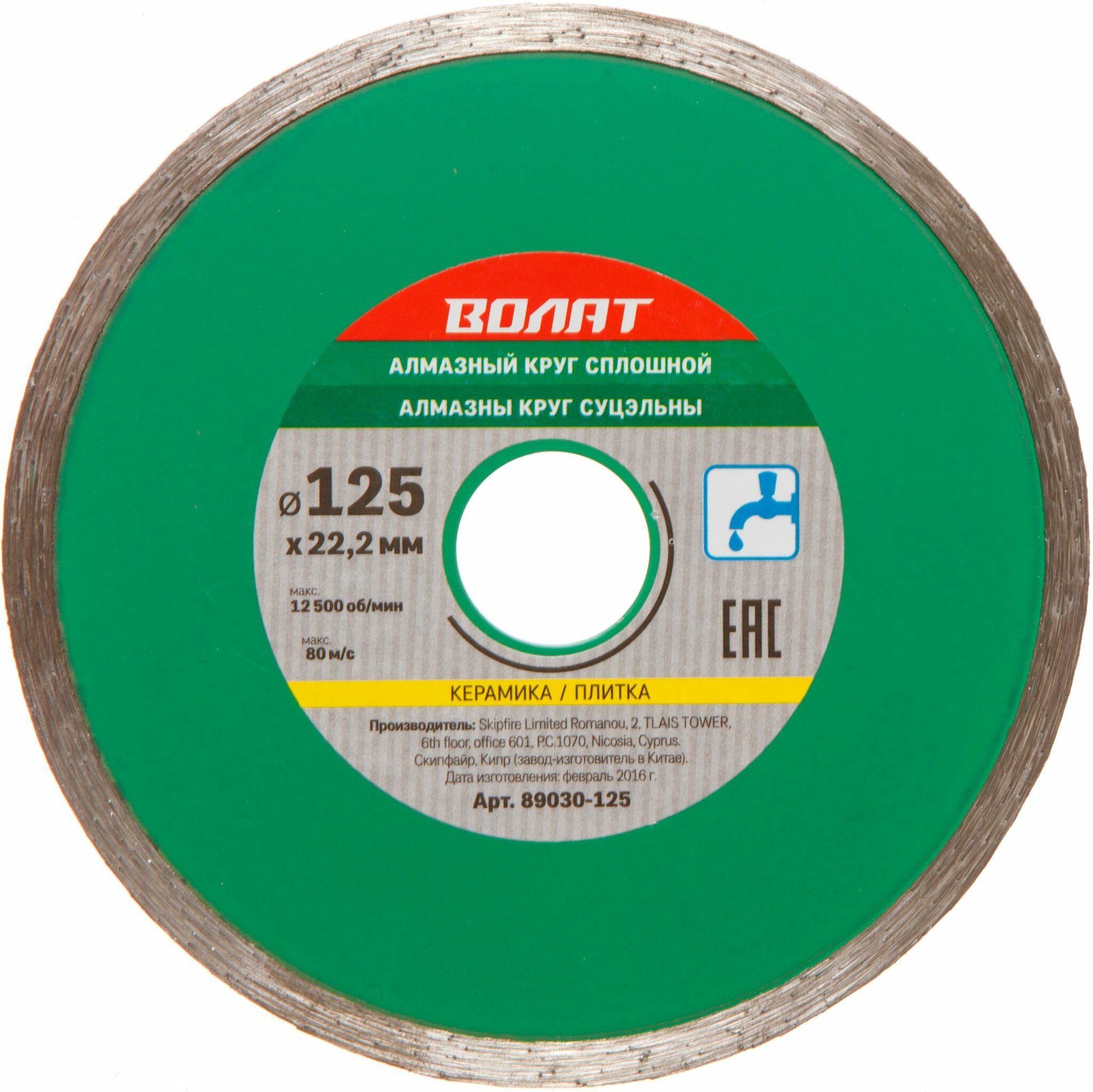 Круг алмазный 125х22 мм ВОЛАТ (89030-125) для работ по керамике, плитке. Подходит для мокрого резания. Может использоваться как оснастка для углошлифмашин, бороздоделов и прочего совместимого инструмента.