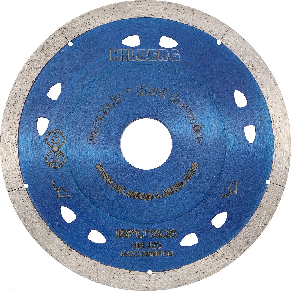 Круг алмазный 125х22 мм по керамике HILBERG (HM420) высококачественный миллиметровый алмазный отрезной диск с фланцем, для деликатных работ по керамограниту и твердой керамике. Технология производства горячее прессование.