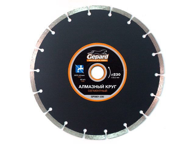 Круг алмазный 230х22 мм GEPARD бетон/кирпич сегментный (GP0801-230) применяется для резки асфальтового полотна, бетона, гранита, кирпича, камня и других твердых материалов. Высокая производительность, высокая скорость резки, высокая прочность, устойчивостью к высоким температурам. Наличие прорезей обеспечивает воздушное охлаждение и выброс продуктов резания. Высокий ресурс использования обеспечивается улучшенным качеством алмазных зерен и оптимально подобранной металлической связкой. Охлаждение водой увеличивает ресурс круга.