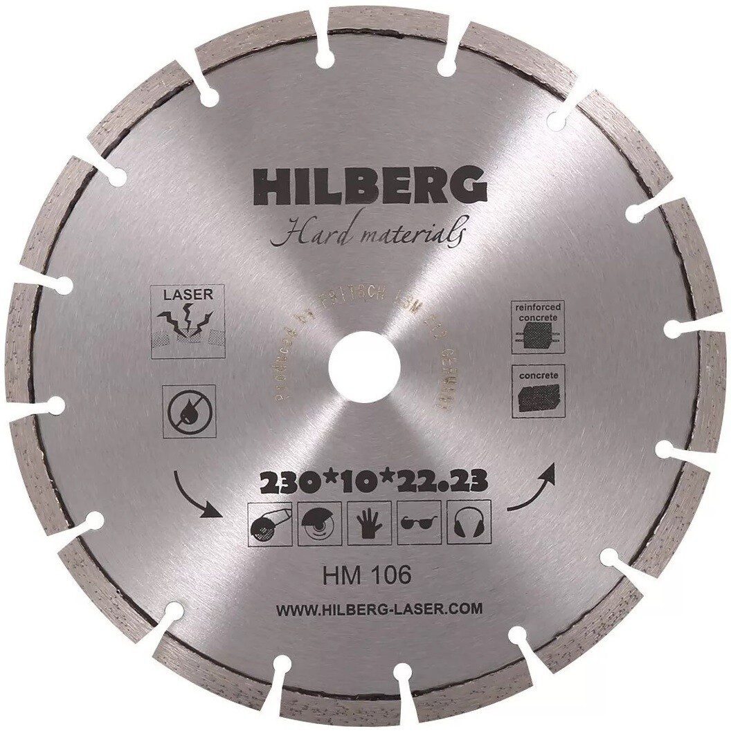 Круг алмазный 230х22,23 мм HILBERG Hard Materials (HM106) произведен методом лазерной наварки сегментов. Назначение: армированный бетон, железобетон, твердый бетон, бетон, огнеупоры, гранит.